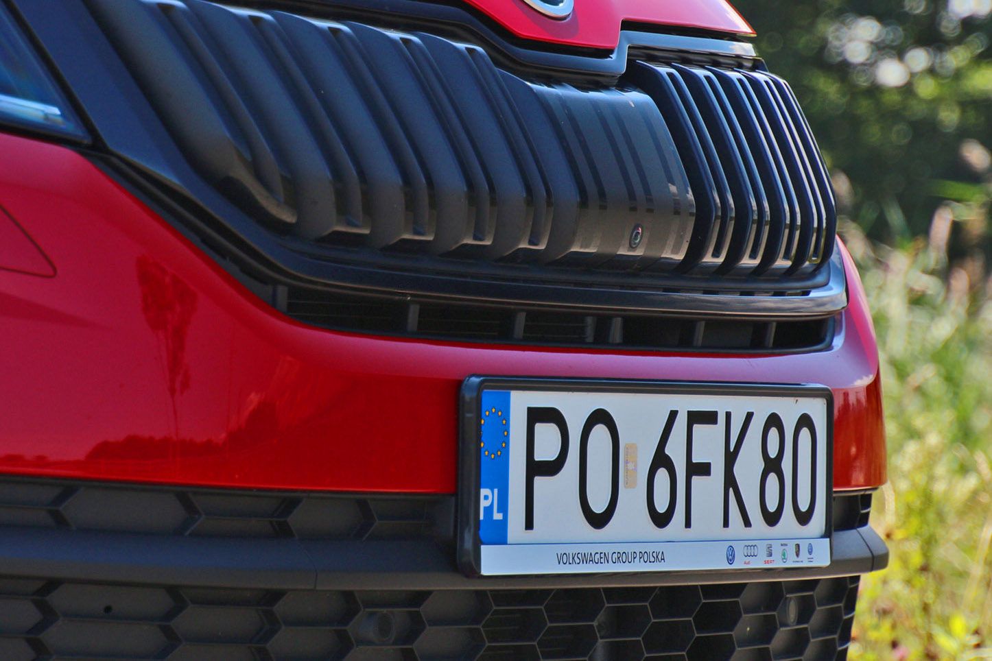 Za tym detalem ukryty jest radar mierzący odległość od poprzedzającego pojazdu. Zbierane z niego dane wykorzystywane są przez adaptacyjny tempomat. W przeciwieństwie do takiego zwykłego, nie tylko utrzymuje zadaną prędkość, ale i dostosowuje ją do otoczenia. W praktyce oznacza to, że jeśli na pasie pojawi się pojazd jadący wolniej, nasze auto samodzielnie zwolni.