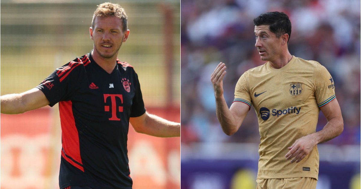 Przegląd SportowyPiłka nożnaBundesligaNagelsmann zapytany o porównanie Mane z Lewandowskim. "To byłoby nieuczciwe"Piłkarze Bayernu Monachium po pokonaniu RB Leipzig 5:3 sięgnęli po Superpuchar Niemiec. Było to pierwsze oficjalne spotkanie, w którym Bawarczycy musieli sobie radzić bez Roberta Lewandowskiego. Po meczu opiekun monachijskiego zespołu — Julian Nagelsmann został poproszony o porównanie Polaka z nową gwiazdą Bayernu — Sadio Mane. Niemiecki szkoleniowiec wypowiedział piękne słowa pod adresem kapitana reprezentacji Polski.31 lipca 2022, 20:44Julian Nagelsmann i Robert Lewandowski (Foto: A. Pretty/Getty Images for FC Bayern, Omar Vega/Getty Images / Getty Images)Więcej najważniejszych informacji znajdziesz na stronie głównej Onetu Piłkarze Bayernu Monachium w sobotni wieczór wywalczyli pierwsze trofeum w nowym sezonie. Bawarczycy sięgnęli po Superpuchar Niemiec, pokonując RB Leipzig 5:3, a było to pierwsze spotkanie, w którym w składzie mistrzów Niemiec zabrakło Roberta Lewandow...