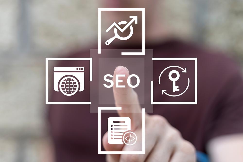 Virtuális érintőképernyőn dolgozó fejlesztő szövegre kattint: SEO.