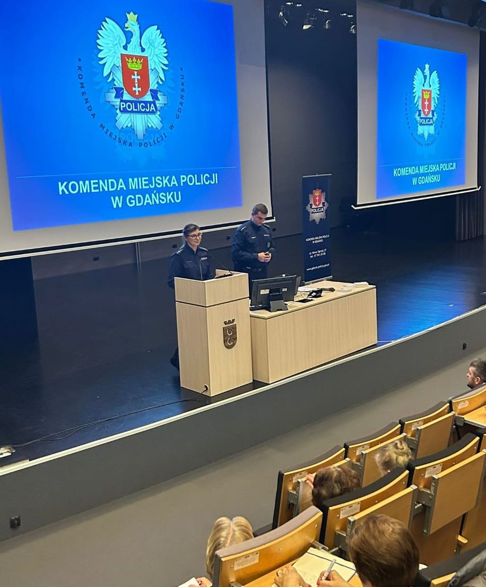 Policjanci spotkali się z seniorami. Podczas debaty funkcjonariusze przekazali, jak skutecznie ustrzec się przed oszustami oraz jak poprawić swoje bezpieczeństwo. Spotkanie odbyło się w sali teatralnej Wydziału Filologii Uniwersytetu Gdańskiego przy ul.Wita Stwosza 57.