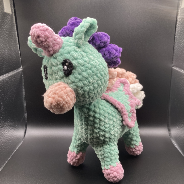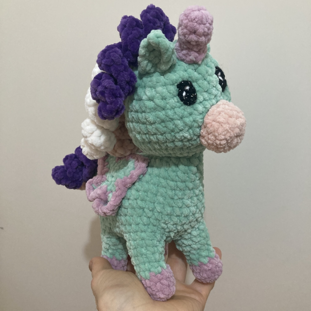 Licorne Ailée au Crochet avec Yeux Pailletés – Création Artisanale Unique. Par Anicroch’astic, vente de peluches et amigurumi au crochet.