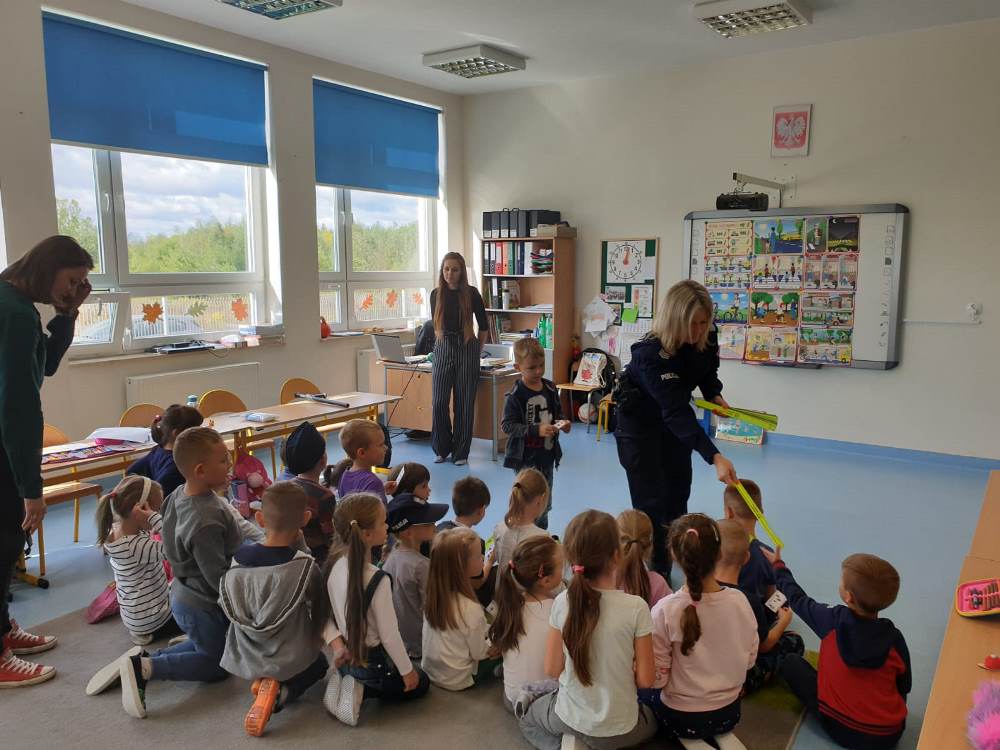 Wczoraj policjantka z Komisariatu w Wieliszewie odwiedziła klasę „0” w Szkole Podstawowej nr 2 w Wieliszewie. Sierżant sztabowy Marta Kucman opowiedziała o swojej pracy oraz przypomniała dzieciom o bezpiecznych zachowaniach zarówno na drodze, jak i w domu. Na zakończenie spotkania "zerówkowicze" otrzymali elementy odblaskowe ufundowane przez wieliszewski samorząd oraz palny lekcji zakupione przez Starostwo Powiatowe w Legionowie.