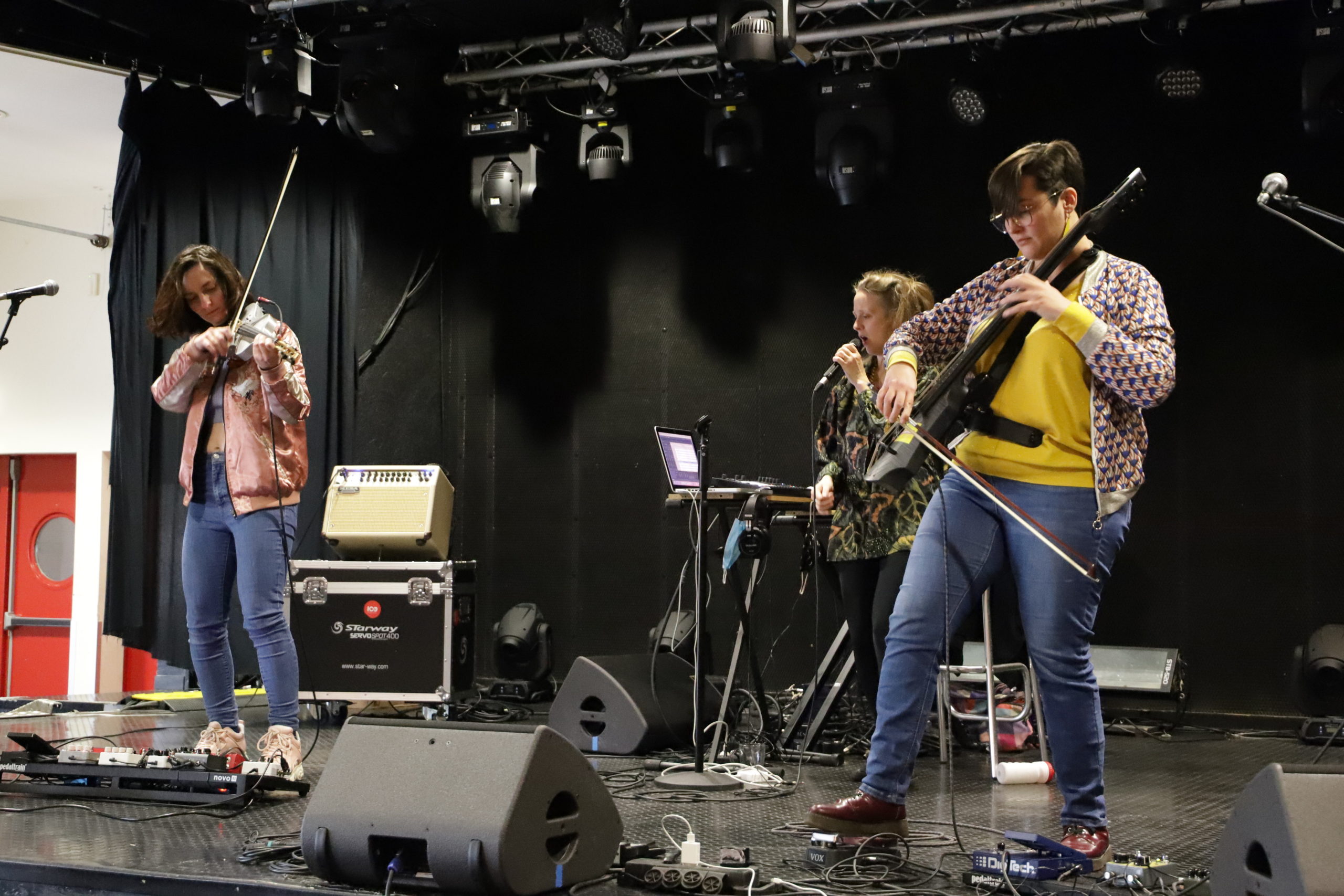 La meute (100% féminine) d’UltraMoule à l’Embarcadère 12.05.2021 Le coin des zicos La semaine passée, nous avons accueilli l’équipe lyonnaise UltraMoule pour 3 jours de résidence à l’Embarcadère. Après leur passage à Montluçon lors des concerts en plein air organisés au Guingois à l’été 2020, elles sont venues cette fois s’approprier leurs nouveaux instruments tout droit sortis des cartons d’emballage ! Excitation et ajustement était au programme de ce temps de travail. Si vous êtes venus cet été au Guingois, vous vous rappelez sûrement de ces 3 nanas (4 même avec Yéyé à la technique) qui ne passent pas inaperçues tant elles vous attrapent dans leur flow hip-hop trash alliant instruments classiques électrifiés, boîte à rythmes et textes jouissifs. Bien que jeune, UltraMoule c’est un power trio cyprinnesque qui ne balbutie pas. Au contraire, elles gueulent haut et fort l’importance du respect de soi et des autres. Sur scène, c’est un co...