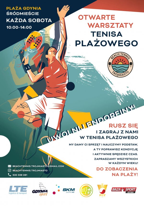 Początek: wydarzenie archiwalne Plaża Gdynia Śródmieście - Gdynia, plaża miejska Sport Wstęp wolny Tenis plażowy jest bardzo łatwą i przyjemną formą aktywności. Techniki i zasad można nauczyć się już na pierwszych zajęciach. Ta niezwykle aktywująca zabawa to połączenie tenisa ziemnego, badmintona i siatkówki plażowej. Przeznaczona jest dla każdego, a swoją formą przepełnioną zabawą i radością zachęca każdego do brania aktywnego udziału w grze.