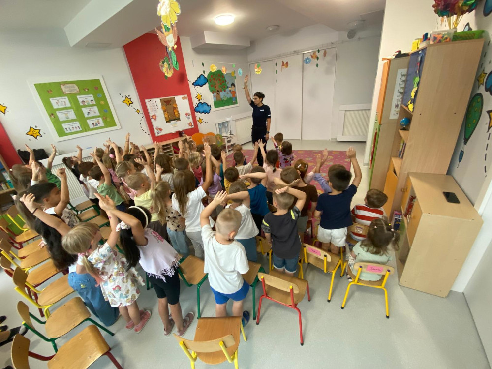 To już nie pierwsza wizyta funkcjonariuszki policji w wolskim przedszkolu. Policjant w mundurze w przedszkolu jest niezwykłym przeżyciem dla dzieci. Policjantka zajmująca się na co dzień profilaktyką przeprowadziła zajęcia w ramach programów profilaktyczno-prewencyjnych dla najmłodszych. Przypomniała dzieciom najważniejsze numery alarmowe, zasady bezpieczeństwa na przejściach dla pieszych, a także to, jak mają zachowywać się w sytuacjach zagrożenia.